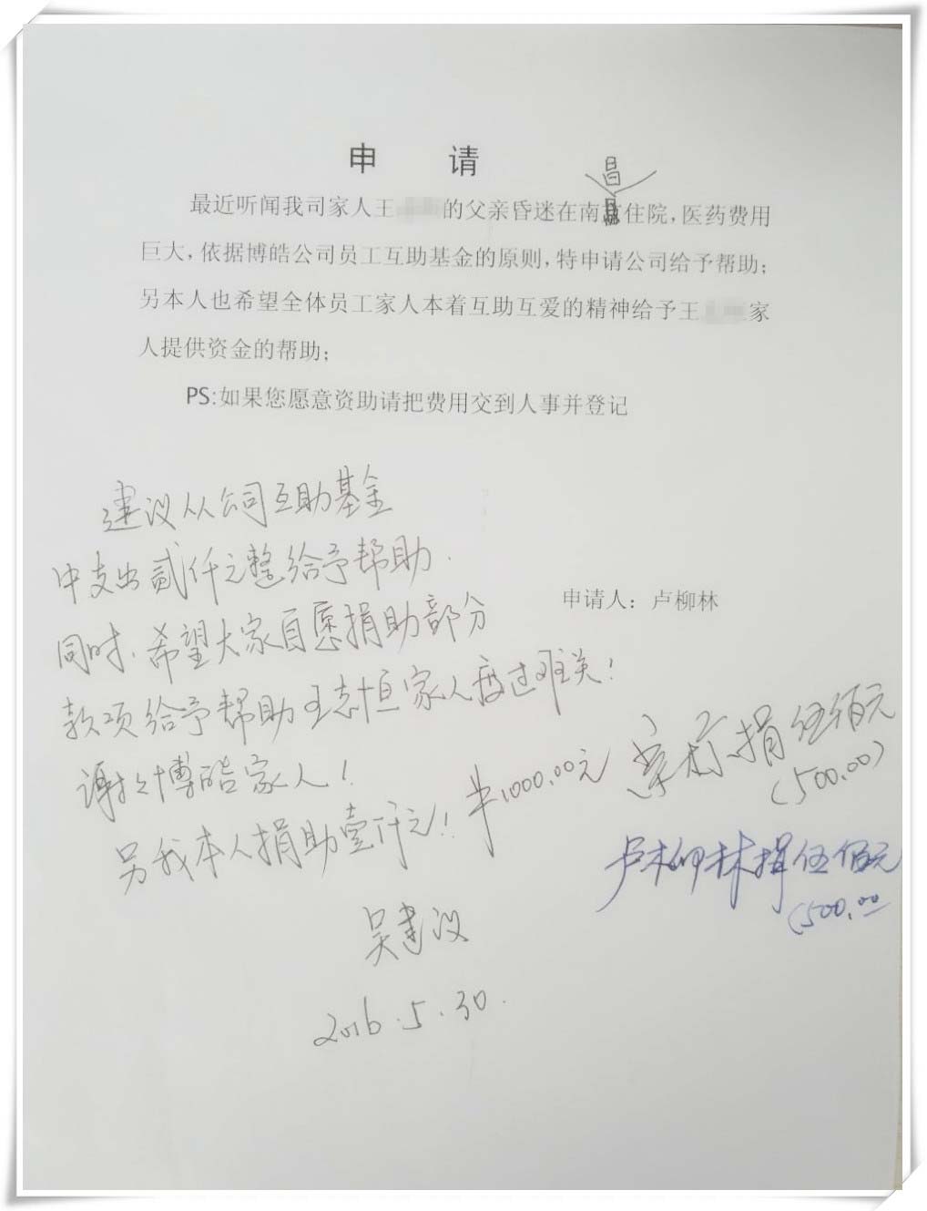 20166月伊始,大家都在為幸福生活忙碌之際,一個(gè)噩耗從天而降。博皓硅橡膠制品廠優(yōu)秀員工小王的父親因隱球菌性腦膜炎在醫(yī)院昏迷不醒。此對(duì)于這個(gè)風(fēng)雨飄搖的小家庭不異于雪上加霜。