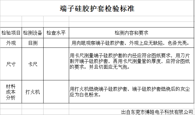 端子硅膠護套(直插硅膠護套)檢驗標準