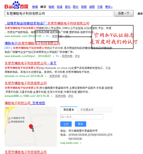 1、找到他們的官方網(wǎng)站,如:東莞市博皓電子科技有限公司的官方網(wǎng)站網(wǎng)址就是http://sydafoundation.net,網(wǎng)址后面后又一個(gè)大V,這個(gè)是百度對(duì)這家公司網(wǎng)站的一個(gè)認(rèn)證標(biāo)志。