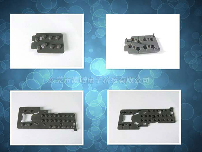 對于硅膠制品廠而言,模壓成型過程中都會(huì)有毛邊的存在,它是為常見的一種硅膠廢料,而毛邊的厚度一般為0.3mm,內(nèi)襯硅膠按鍵模壓出來之后需要加工把毛邊切除或撕掉,所以內(nèi)襯硅膠按鍵的薄邊厚度設(shè)計(jì)不能超過0.3mm這個(gè)數(shù)值。我們博皓一般會(huì)建議客戶做成0.4mm以上的厚度,這樣既能保證拆邊的良品率,也有利于內(nèi)襯按鍵的物理性能,太薄是容易破損的。 在博皓,內(nèi)襯硅膠按鍵做了非常多,厚度也各不相同,大多數(shù)厚度都在0.8mm-1.0mm之間,顏色采用灰色,硬度在55±3°。