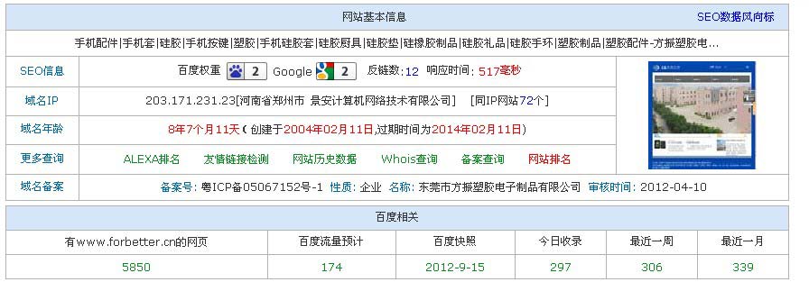 東莞博皓電子是今年上線的,正式的優(yōu)化花費(fèi)了大概有3個月時間,計劃中的幾個有目標(biāo)關(guān)鍵詞現(xiàn)在都排名第一了,接下來的三個月是將熱門關(guān)鍵詞硅膠、硅橡膠、按鍵優(yōu)化到百度首頁的前5名,外鏈做的比較好,網(wǎng)站的設(shè)計在整個硅膠行業(yè)的企業(yè)網(wǎng)站里面應(yīng)該可以說是好的,缺點(diǎn)是上線不久,還處于百度的沙盒效應(yīng)中,導(dǎo)致收錄數(shù)量很差,后期可能會有排名不穩(wěn)定的現(xiàn)象。