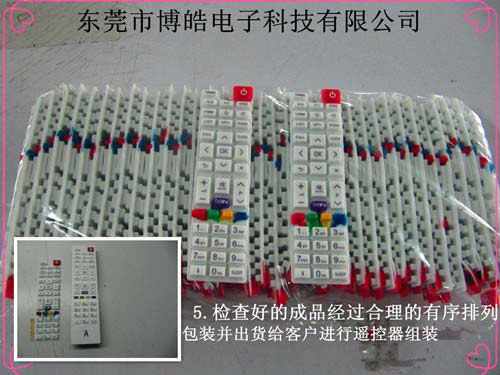 東莞市博皓電子科技有限公司是硅膠遙控器按鍵、電子詞典按鍵、P+R電子產(chǎn)品按鍵、防振硅橡膠腳墊、硅橡膠雜件、各類手機按鍵等產(chǎn)品專業(yè)生產(chǎn)加工的有限責(zé)任公司,公司總部設(shè)在東莞市橋頭鎮(zhèn)朗廈村景盛路98號,擁有完整、科學(xué)的質(zhì)量管理體系。下面為大家介紹遙控器按鍵的實際實地生產(chǎn)流程: