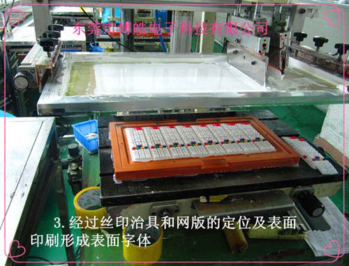 3.采用全自動氣壓跑臺式絲印機器印刷表面字符,如圖: