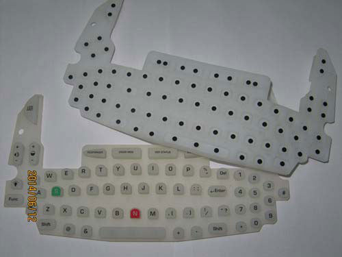 - 這是一款采用硅膠和熒光硅膠做的硅膠遙控器按鍵,產(chǎn)品圖中綠色部分即為熒光效果按鍵,另外還有個更獨(dú)特的浮雕效果按鍵,完全不用再印刷,憑手感就可以識別數(shù)字,該款硅膠遙控器按鍵反面還加有導(dǎo)電黑粒,可以起到導(dǎo)電效果。