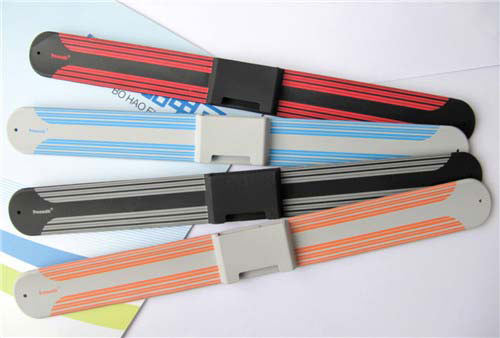 硅膠拍拍帶是最近市場比較流行的一款運動型產品的附屬品,產品主要是運用在電子手表,脈搏測試儀或者純屬裝飾品。這種產品因為顏色比較多,經過的各段的工藝流程比較復雜。而博皓電子在經過不到4年的發(fā)展已經擁有3個工廠的生產規(guī)模,目前擁有成型機器42臺,生產需要的相應絲印設備噴涂設備一應俱全,并且每個工廠能維持在150人的生產力,所有的工藝均是在本廠內部完成。