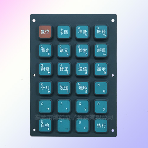 - 產(chǎn)品簡介:本款硅膠按鍵是專用于軍事機(jī)械上控制器按鍵,采用噴涂+鐳雕+PU工藝,這種生產(chǎn)工藝是典型的儀器設(shè)備按鍵的生產(chǎn)工藝,還有另一種工藝為噴油+鐳雕+噴手感油是同樣具有耐用效果。