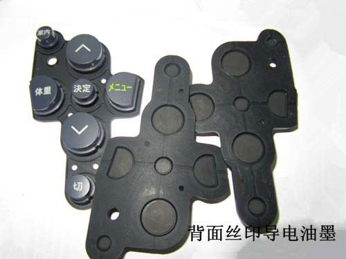 產(chǎn)品底部的硅膠按鍵除了取到內襯按鈕的作用以外,還增加了背面絲印導電油墨的工序,使產(chǎn)品具體導通電源的功能。